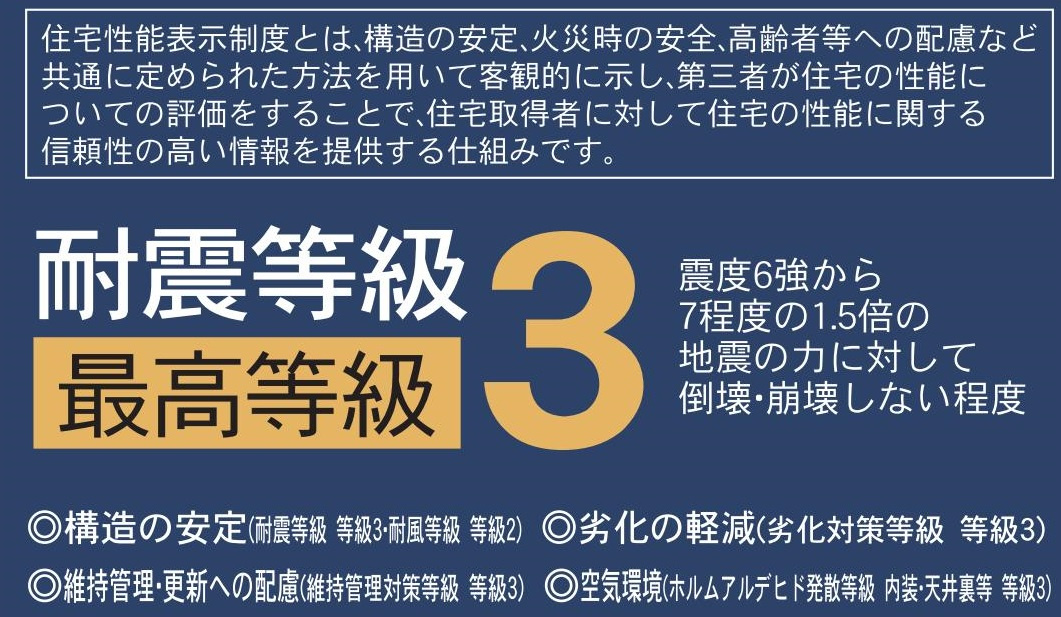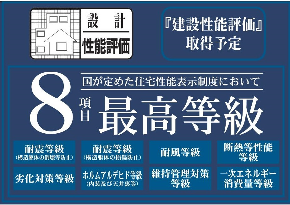 国が定めた住宅性能表示で8項目が最高等級を取っている住宅です。